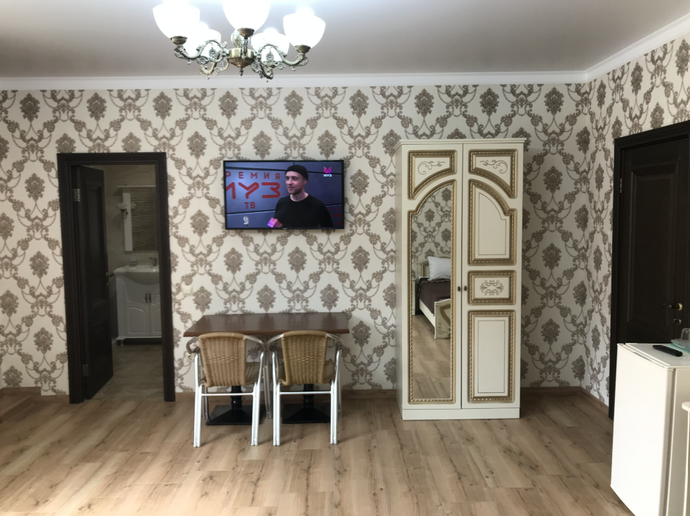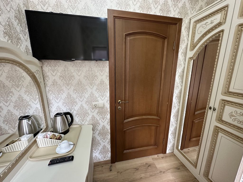 В номере вы найдёте телевизор. Оснащение зависит от выбранной категории номера.