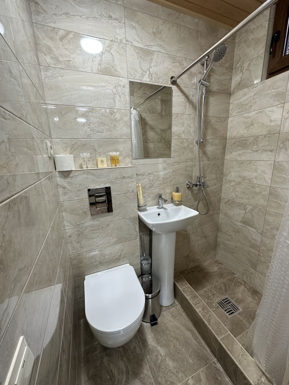 двуспальная кровать, телевизор смарт, холодильник, электрический чайник, Wi-Fi. с/у, ванна, фен. Мансардные окна.