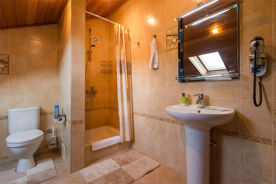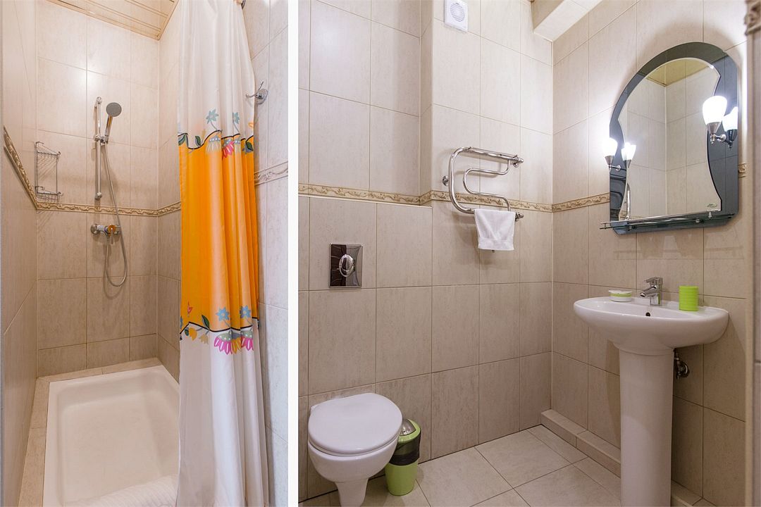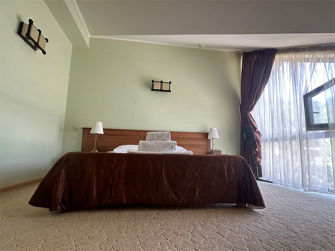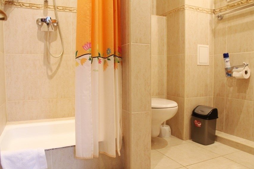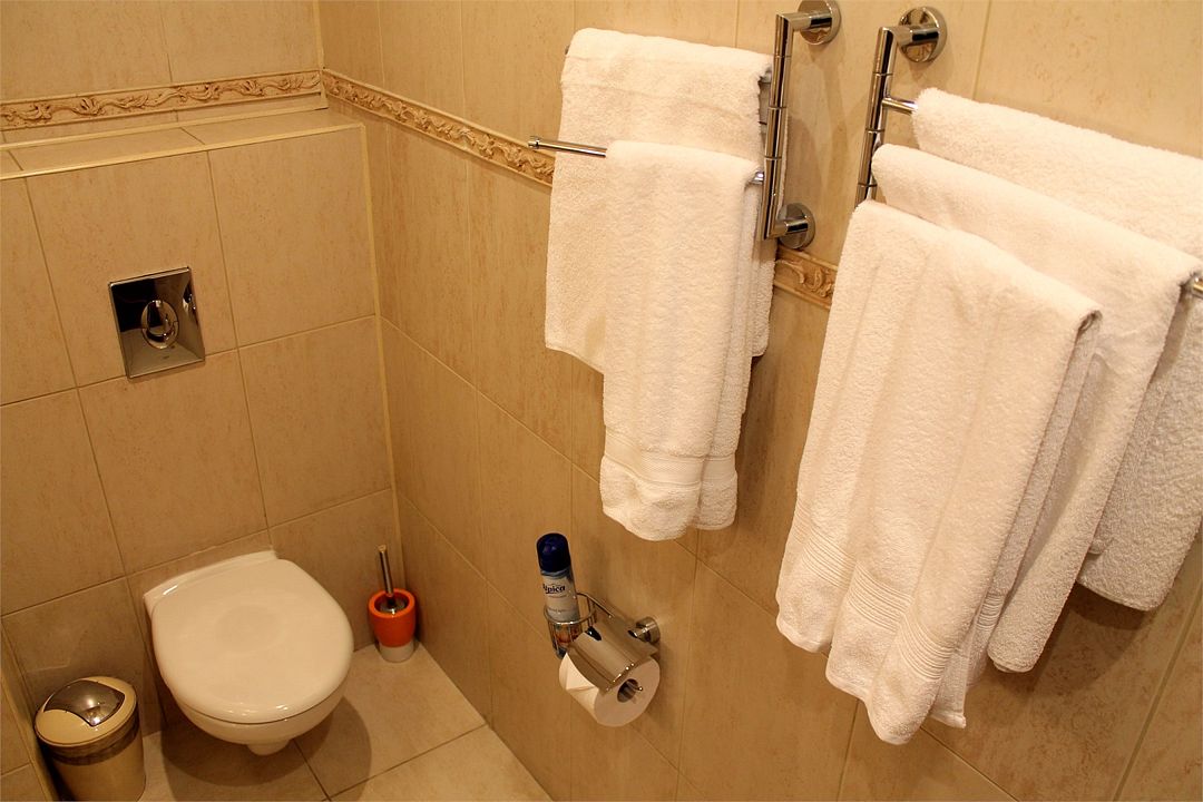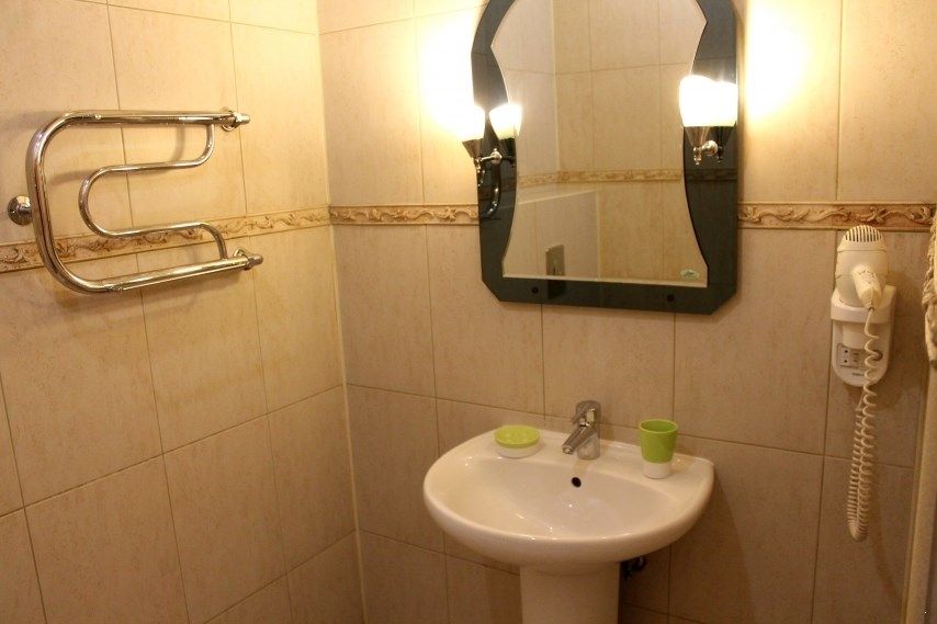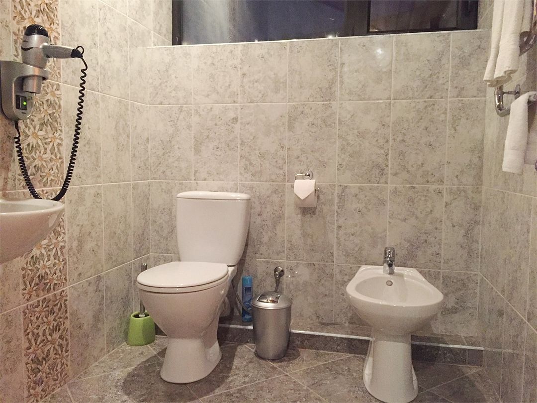 Санузел: душ, фен, средства личной гигиены, набор полотенец. Сервис: уборка номера и смена полотенец — один раз в три дня, смена белья — один раз в пять дней.