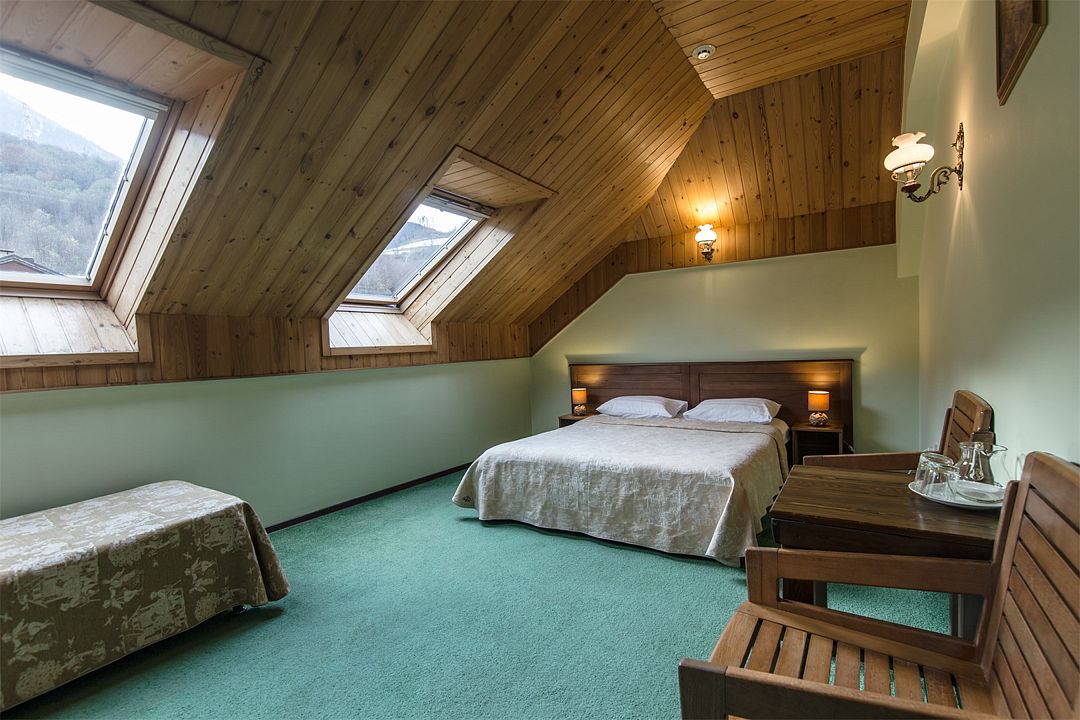 Короткий отпуск с друзьямиОтличный вариант отдыха на Розе ХуторОтель рядом со станцией, но движения поездов не слышно. Персонал вежливый. Номерной фонд немного "уставший", но всё чисто и по-домашнему. Завтраки и обеды в кафе вполне вкусные, порции большие. Отдельно упомяну подогреваемый бассейн и баню, в которой можно заказать услуги авторского парения, чтобы воспарить душой, телом, оздоровиться и почувствовать себя на высоте.