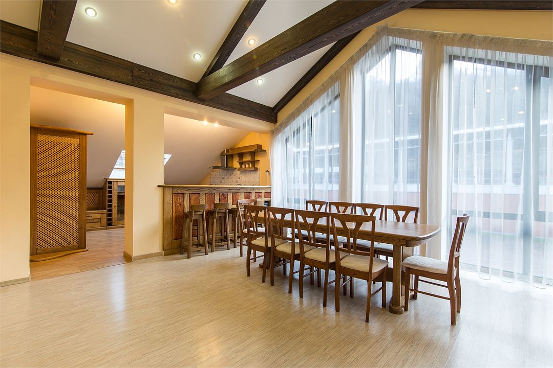 Светлое помещение 200 кв.м с высотой потолков более 4 метров. Конференц-зал отеля располагает 70 посадочными местами. Для удобной работы есть всё необходимое: проектор с экраном (подключение по HDMI или VGA кабелю), флип-чарт, кондиционер, отопление, камин, а также две террасы, два санузла и парковка.