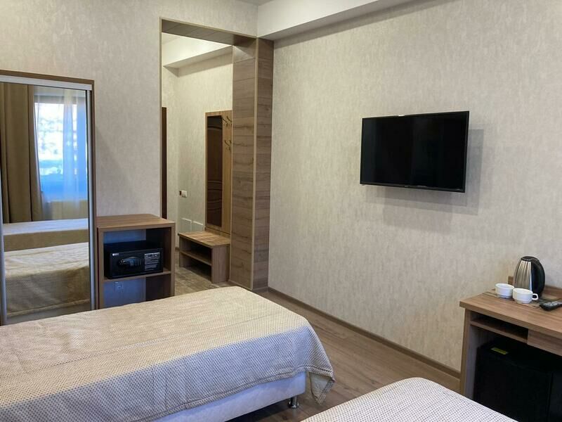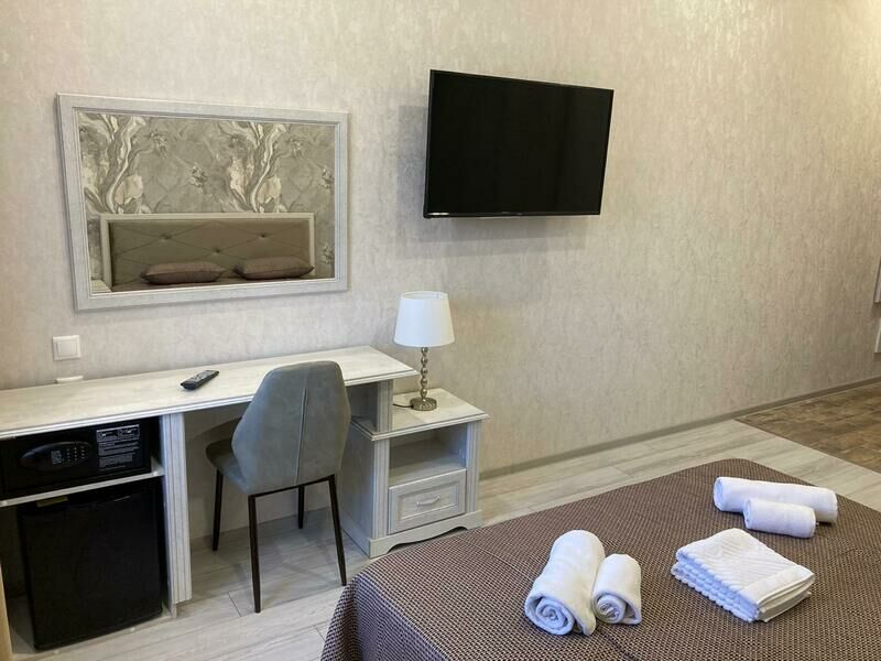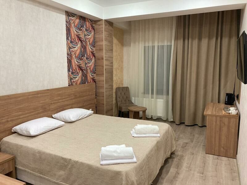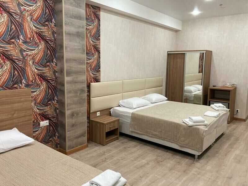 Трехэтажный корпус отеля находится на тихой и спокойной улице. Жилой фонд, рассчитанный на 50 человек, предлагает отдыхающим номера категории Стандарт и Апартаменты. В номерах интересный дизайнерские интерьеры, все они оснащены кондиционером, санузлом с душем, необходимой бытовой техникой — в комнатах есть телевизор, фен, мини-холодильник. Апартаменты оборудованы мини-кухней.