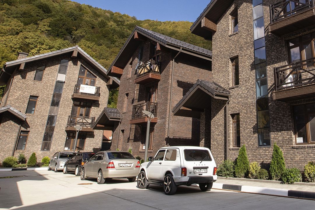 Территория шале «Горки Вилладж» закрыта для автомобилей. Здесь расположены 8 шале, для гостей на личном транспорте предусмотрены парковочные места. На въезде действует система контроля доступа.