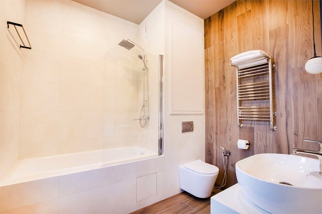 на 1-м этаже расположена гостиная комната с кухней, гардероб с принадлежностями для глажки, место для хранения лыжного инвентаря, сейфовый шкафчик, стиральная машина, туалетная комната; на 2-м этаже спальная с выходом на балкон, вторая спальная с собственной ванной комнатой, душевая комната с туалетом на этаже; на 3-м этаже - три спальные комнаты с одной большой кроватью (одна комната с балконом), душ и туалетная комната на этажеУслуги и удобства