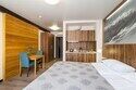 Wi-Fi, холодильник, кондиционер, фен, плита для приготовления пищи, микроволновая печь, душевая кабина, санузел, теплый пол, банные полотенца, косметические средства, двуспальная кровать, тумбы, стулья, письменный стол, обеденный стол, зеркало, две комнаты, кухня, чайный набор, набор посуды, чайник, унитаз, питьевая вода, обеденная зона, гостиная зона, душ, вид на сад, кулер на этаже, вид во двор, ламинат, высокие потолки, кухонная посуда, стаканы, кухонная утварь, столовые приборы, туалетные средства, цифровое тв, телевизор с плоским экраном, мини-кухня, кухонный уголок, москитная сетка, шкаф-купе, теплые полы, номер для некурящих, рабочий стол, общественный бассейн, межкомнатная дверь, уборка номера, набор для приготовления чая и кофе, услуги прачечной (платно), вешалки-плечики, частный двор, затемняющая штора, прачечная (за дополнительную плату), без питомцевВ номере