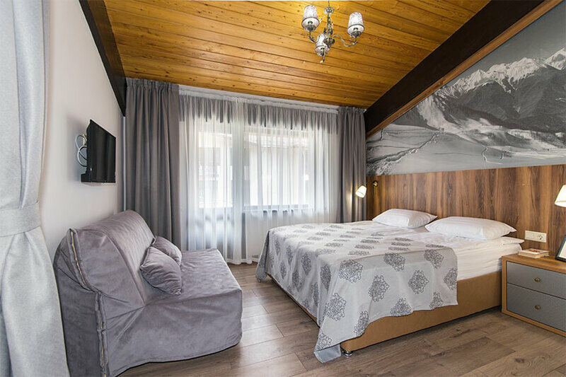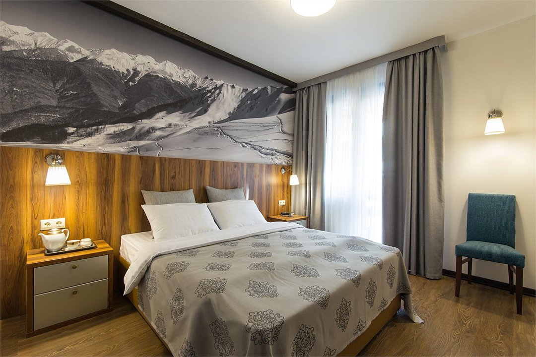 авг. 2022 г.Лучший отель в Эсто-Садок.Был поражен данным отелем. Считаю его лучшим на территории Эсто-Садок. Можно, конечно, поселиться в сделанном из папье-маше Marriott, у которого реально отваливаются карнизы, но в этом случае будешь себя чувствовать, как на битом Lamborghini. К Shalet Greystone никаких претензий нет вообще. В нем отопление это не батареи, а теплые полы. Много элементов не функциональных, но приятных. Например, в моем номере фотообои имели специальную подсветку. Читать при ней нельзя, но атмосфера экстремально романтичная. Хозяин отеля пошел на сокращение количества номеров, но за счет этого получился шикарный холл с камином, перед которым можно вечером выпить бокал вина. И самое главное для лыжников: в отеле есть баня. Не сауна, а настоящая русская баня, которую топят дровами. А рядом с баней - бассейн, куда из этой бани можно окунутся. В общем, рекомендую.