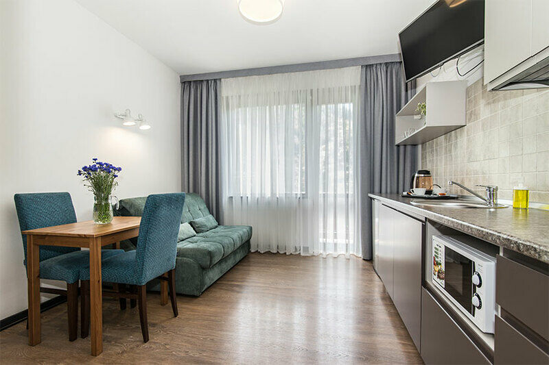 телевизор, Wi-Fi, холодильник, кондиционер, фен, будильник, плита для приготовления пищи, микроволновая печь, душевая кабина, санузел, теплый пол, банные полотенца, косметические средства, две односпальные или большая двуспальная кровать, тумбы, стулья, шкаф для одежды, обеденный стол, зеркало, кухня, чайный набор, набор посуды, чайник, унитаз, раковина, питьевая вода, обеденная зона, душ, вид на город, кулер на этаже, ламинат, кухонная посуда, стаканы, кухонная утварь, столовые приборы, сплит-система, цифровое тв, раскладное кресло, телевизор с плоским экраном, мини-холодильник, мини-кухня, кухонный уголок, номер для некурящих, общественный бассейн, кресло-кровать, чайная станция, уборка номера, набор для приготовления чая и кофе, услуги прачечной (платно), вешалки-плечики, без питомцевВ номере