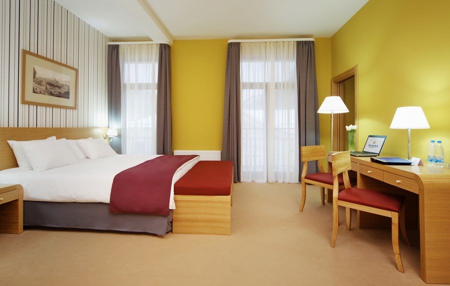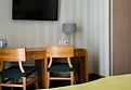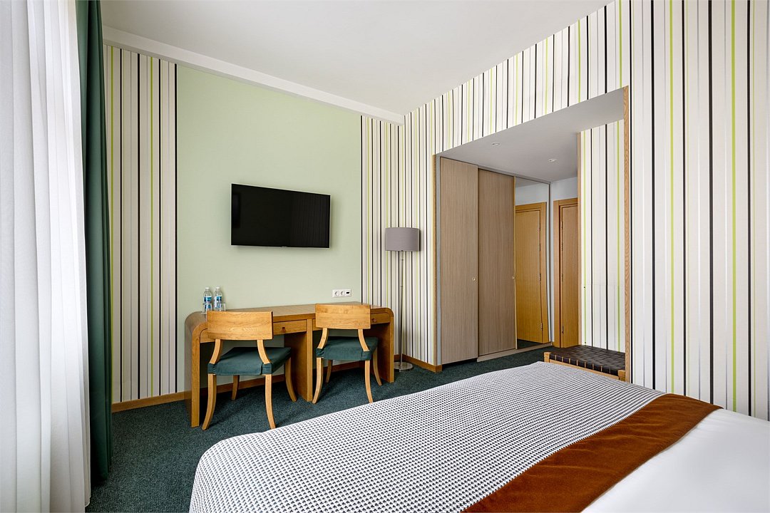 Современный номер с одной двуспальной кроватью «King-size» или двумя полутороспальными кроватями предназначен для комфортного размещения гостей. Номер укомплектован ЖК телевизором, рабочим местом, телефоном, мини-холодильником, чайником и набором посуды. Ванная комната с подогреваемым полом оборудована просторной душевой кабиной, набором полотенец, косметическими принадлежностями. и феном.Услуги и удобства