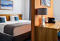 2-спальная или две 1-спальные кровати, балкон, ТВ, рабочее место, чайный набор, телефон. Ванная комната с подогреваемым полом оборудована душевой кабиной, набором полотенец, косметическими принадлежностями и феном.