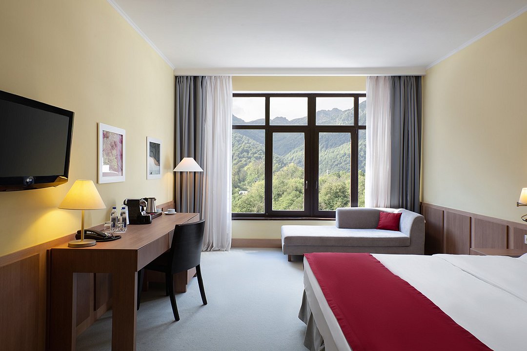 Номер повышенной комфортности площадью 25 кв. м. с двуспальной кроватью «King-size» или двумя односпальными кроватями. Во всех номерах данной категории предусмотрены балконы с которых открывается вид на горные вершины и реку. Полностью обновлённые номера оснащены: эргономичной мебелью из массива ясеня, чайным набором (электрический чайник, пиалы и чашки), мини-холодильником, ЖК-телевизором, рабочим пространством, бутилированной водой (предоставляется при заезде), телефоном, высокоскоростным проводным интернетом и Wi-Fi. Ванная комната, с подогреваемым полом, оборудована: просторной душевой кабиной, набором полотенец, косметическими принадлежностями (в диспенсерах) и феном.Услуги и удобства