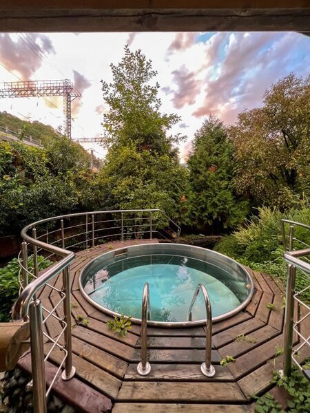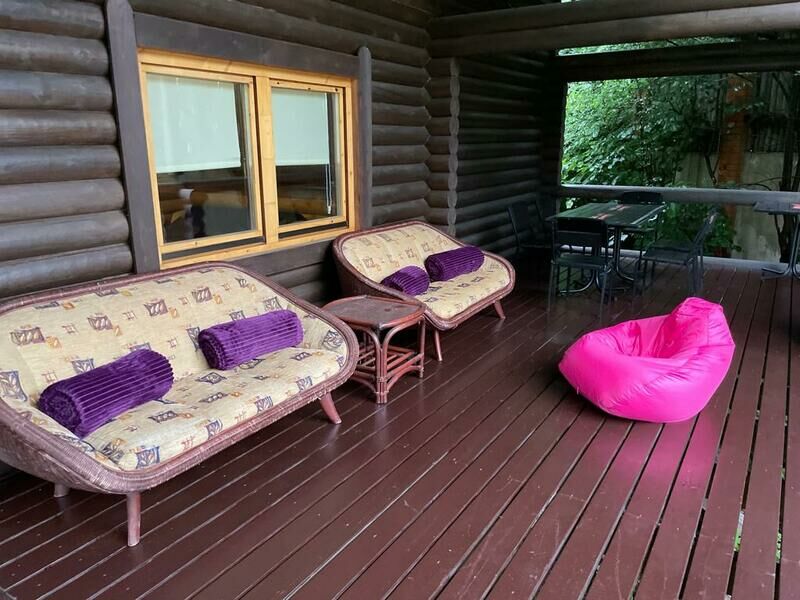 Банный дом с кухней, душем, уборной. Ледяная купель. Терраса с качелями и зоной трапезы. Аренда минимум 2 часа. Полотенца и веники предоставляем.