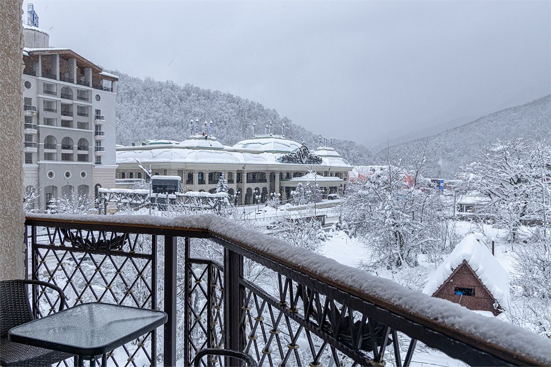 Дизайнерский номер Deluxe Plus с балконом, видом на горы и курорт. Подходит для размещения гостей в количестве до 3х человек. Гости имеют свободный доступ к посещению SPA комплекса, уличного бассейна и тренажерного зала.Услуги и удобства