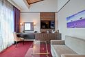 Представительский двухкомнатный номер Business Executive Suite, оснащен панорамным остеклением, двуспальной кроватью размера King size, просторной гостиной, двумя балконами, большими ЖК телевизорами, ванной комнатой, кухней и зоной для отдыха. Подходит для размещения гостей в количестве до 4х человек. Гости имеют свободный доступ к посещению SPA комплекса, уличного бассейна и тренажерного зала.Услуги и удобства
