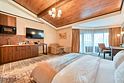 Роскошный номер Luxury без балкона с панорамным остеклением создаёт идеальную атмосферу для отдыха. Оснащен двуспальной кроватью размера King size, кухней, большим ЖК телевизором и просторной ванной комнатой. Подходит для размещения гостей в количестве до 3х человек. Гости имеют свободный доступ к посещению SPA комплекса, уличного бассейна и тренажерного зала.Услуги и удобства