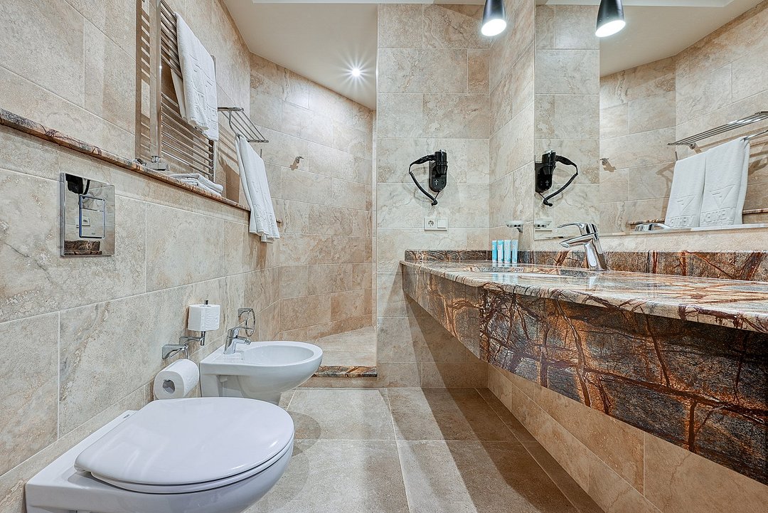 Современный двухкомнатный номер Superior Chalet, оснащен двуспальной кроватью размера King size, большой гостиной, балконом, просторной ванной комнатой, кухней, обеденной зоной и зоной для отдыха. Подходит для размещения гостей в количестве до 4х человек. Гости имеют свободный доступ к посещению SPA комплекса, уличного бассейна и тренажерного зала.Услуги и удобства