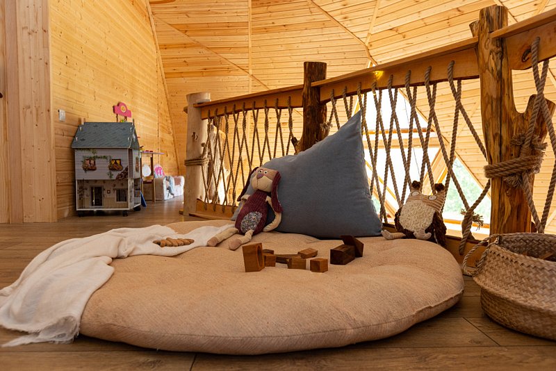 Для детей оборудована детская площадка, а также есть няня, которая приглядит за малышами.