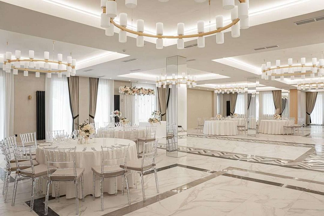 На территории также есть ресторан и кафе, в которых можно вкусно поесть или арендовать банкетные залы для проведения любого тожества.