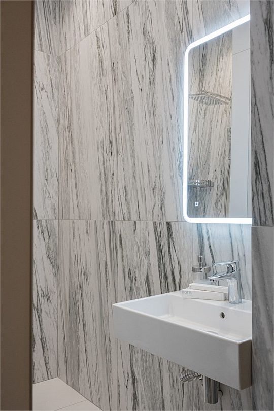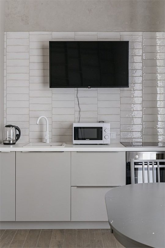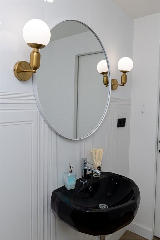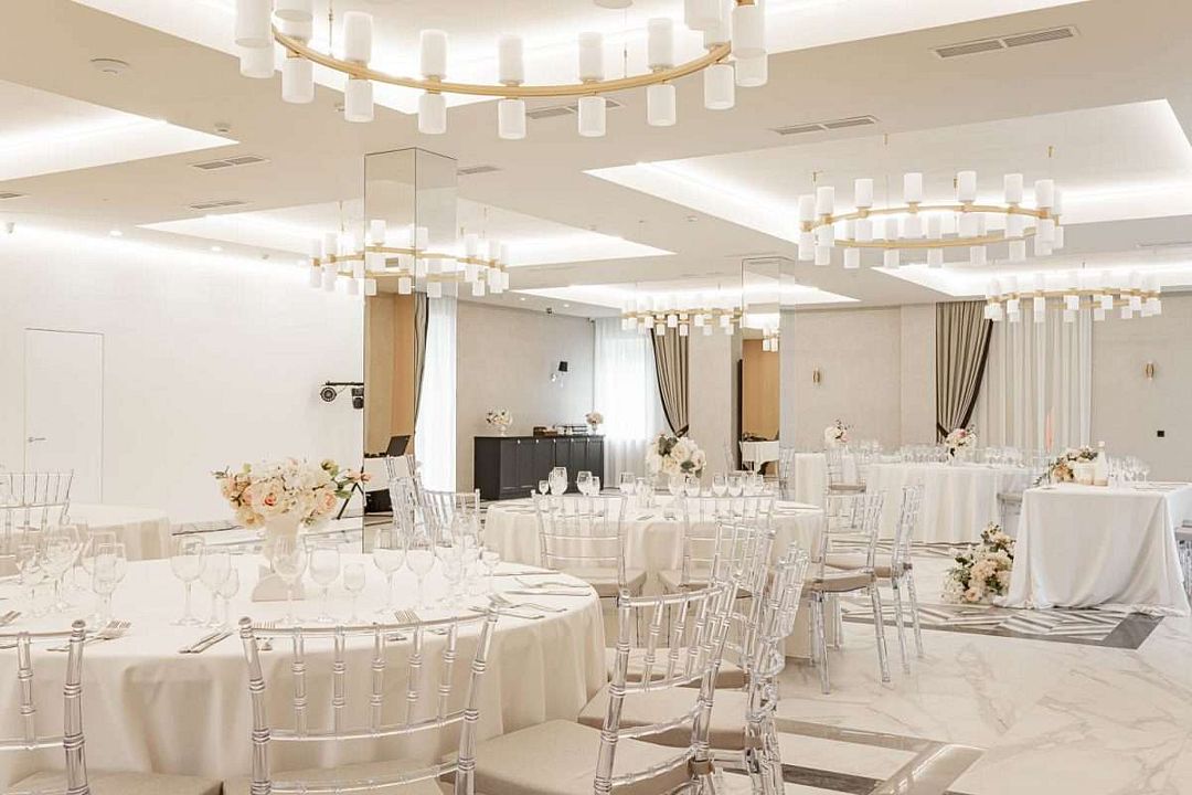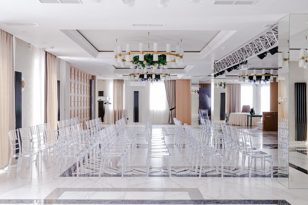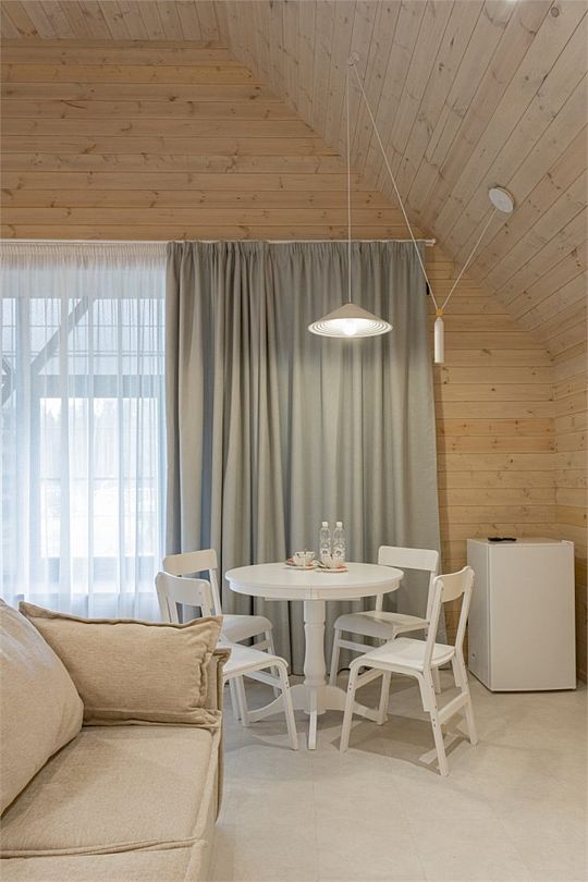 Простота и утонченность интерьера не требуют дополнительных декораций, панорамные окна наполняют зал светом и воздухом, а балкон с потрясающим видом на лес станет отличной площадкой для уникальных фотографий.