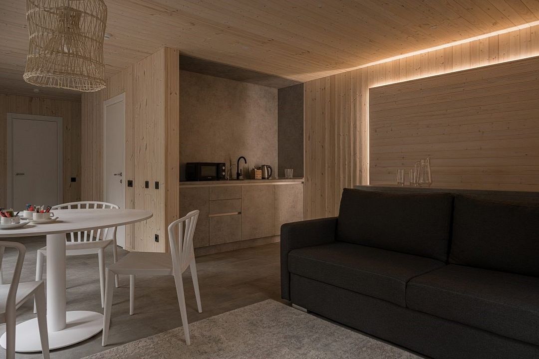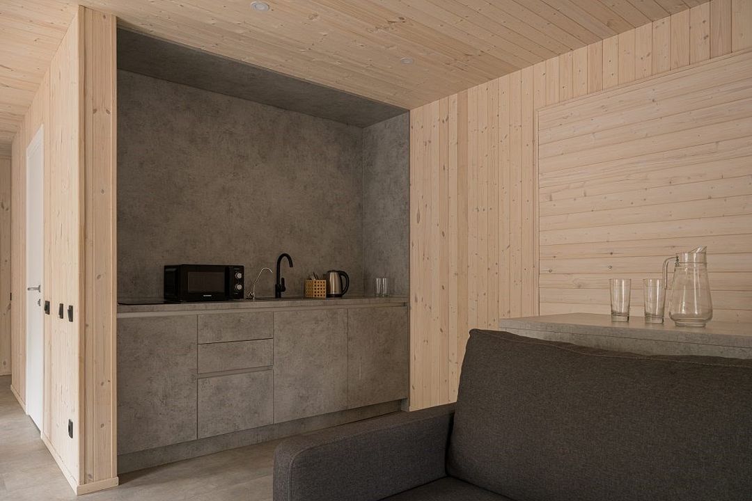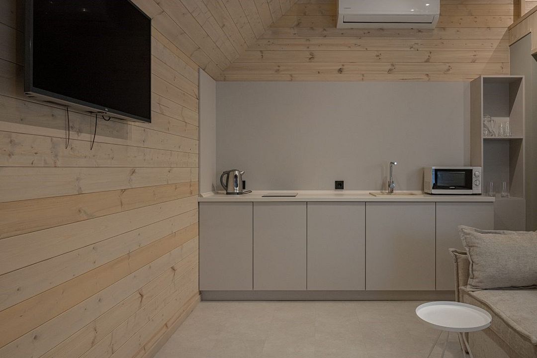 Гостиничный комплекс представляет предлагает разнообразные варианты размещения — от простых номеров с базовым уровнем удобств до роскошных апартаментов с собственной кухней, домов-контейнеров и коттеджей.