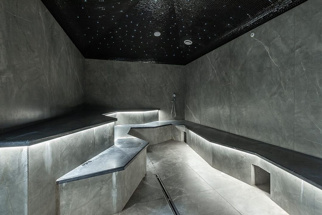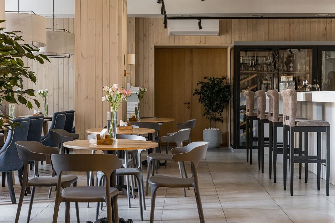 Каминный зала в ресторане Baden Gourmet (это пристрой к зданию ресторана с панорамным видом на бассейны). Уютный и стильный интерьер зала с камином и живым огнём не оставит вас равнодушными. Зал прекрасно подходит для небольших семейных праздников. Часы работы ежедневно с 9:00 до 23:00, кухня до 22:00.