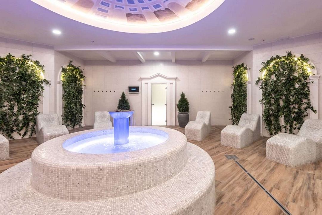 Термальный комплекс включает в себя несколько открытых и закрытых бассейнов, банный комплекс народов мира с четырьмя — Россия, Средиземноморье, Германия и Восток, сауну, купель и зоны отдыха. Предоставляются SPA-услуги, которые благоприятно скажутся на Вашем здоровье: парение, массажи, и обертывания. Есть соляная комната.