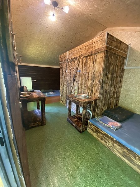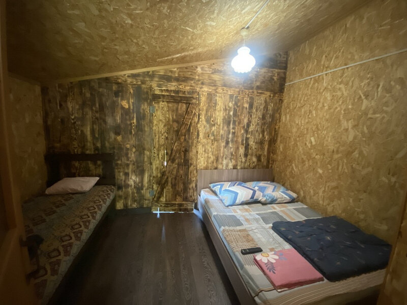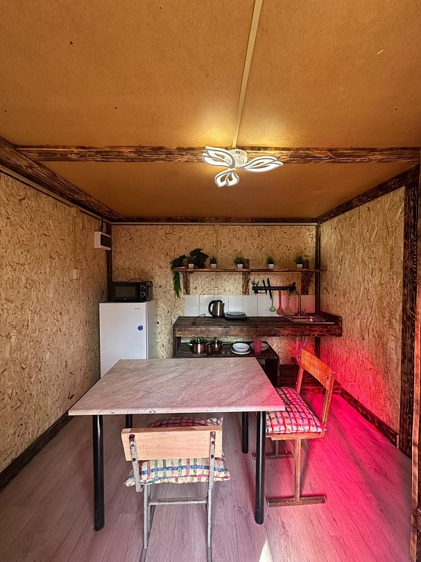 Уютный дом на 3 человек. Рядом с домом располагается небольшая зона с мангалом и беседкой. Также есть возможность забронировать обе половинки сдвоенного дома, чтобы вместе провести время и комфортно отдохнуть!