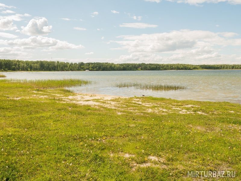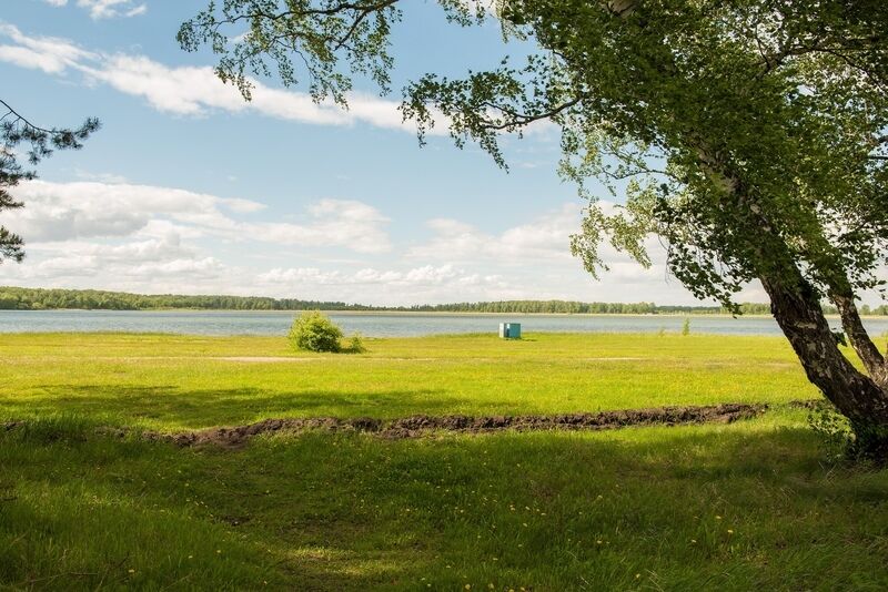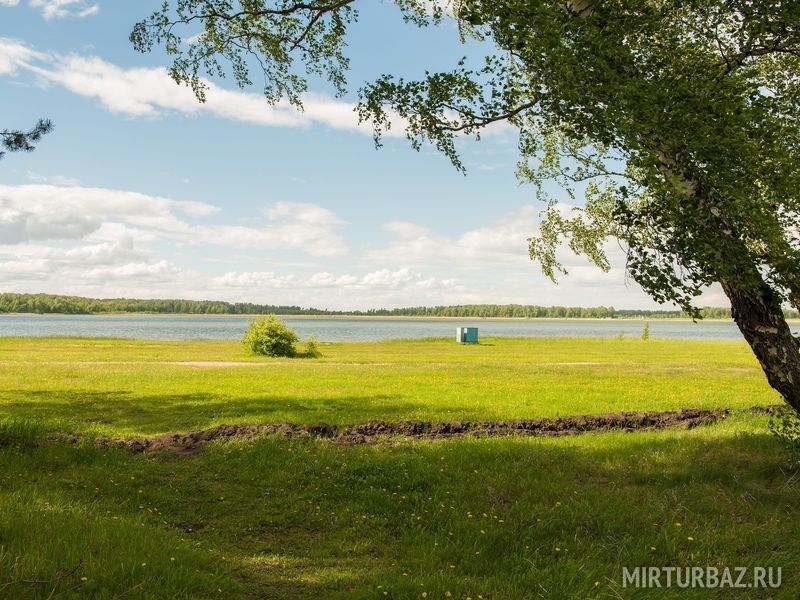 Ближайшее озеро с песчаным пляжем находится всего в 200 метрах от базы отдыха.