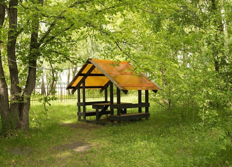 Почти все домики для отдыха имеют собственные беседки. Эти небольшие, но уютные крытые строения отлично подходят для посиделок в тесной дружеской компании.