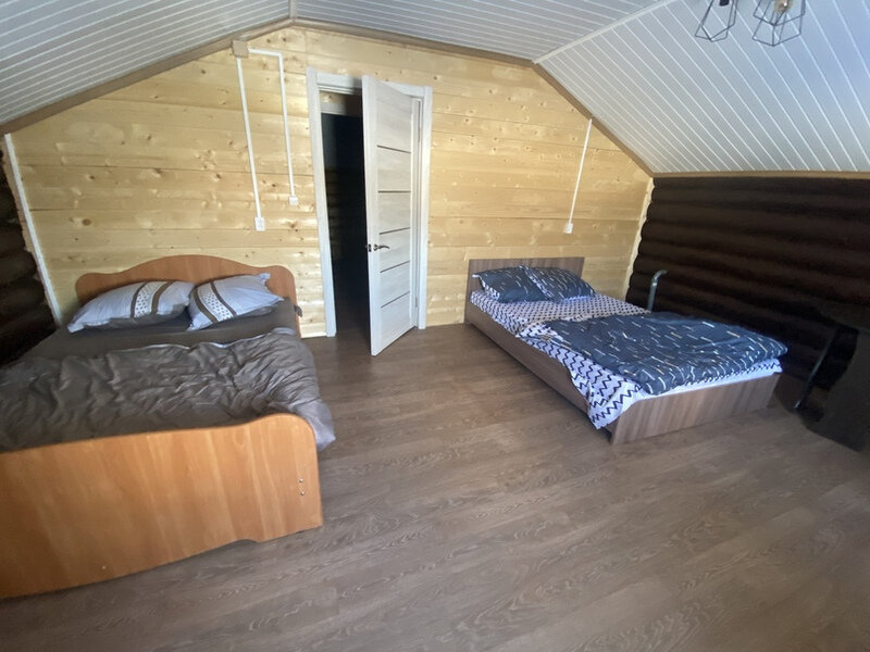 Второй этаж: четыре комнаты с двухспальными и односпальными кроватями.