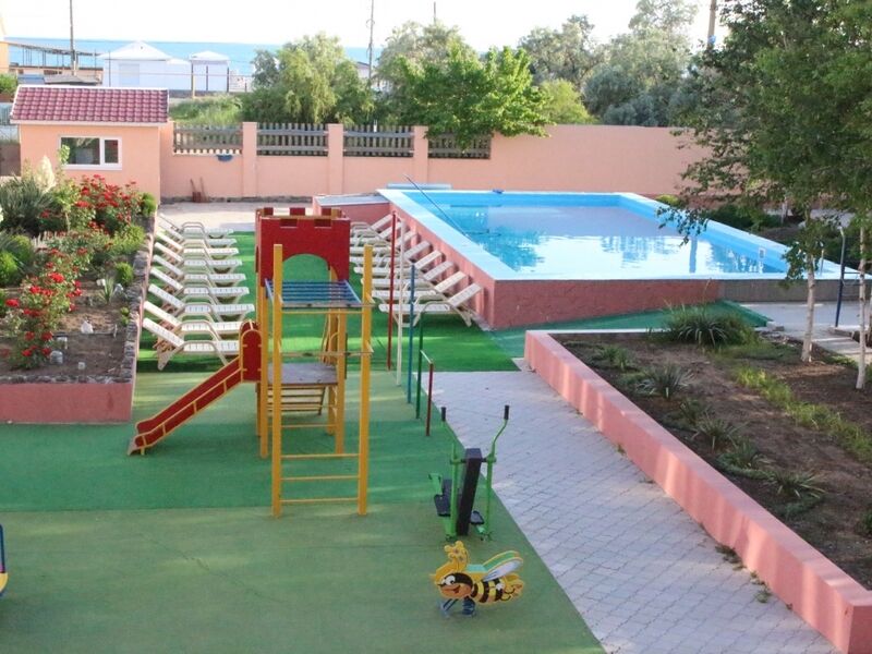 Пансионат «Акватория» – отличный вариант для всех, кто ищет отель в Евпатории с бассейном. Когда море штормит и на пляже ветрено, очень приятно поплескаться в водичке прямо в двух шагах от номера. Территория пансионата защищена от ветра, так что у бассейна вам всегда будет тепло и комфортно.