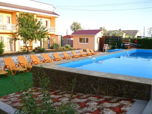 Семейный отдыхДостоинстваОчень хороший бассейн, который регулярно чистят. Большой плюс, что он сильно не пахнет хлоркой. До моря идти пару минут. Пляж чистый, галечный. есть лежаки, но платные. Администратору отдельно хотелось бы поставить 5+