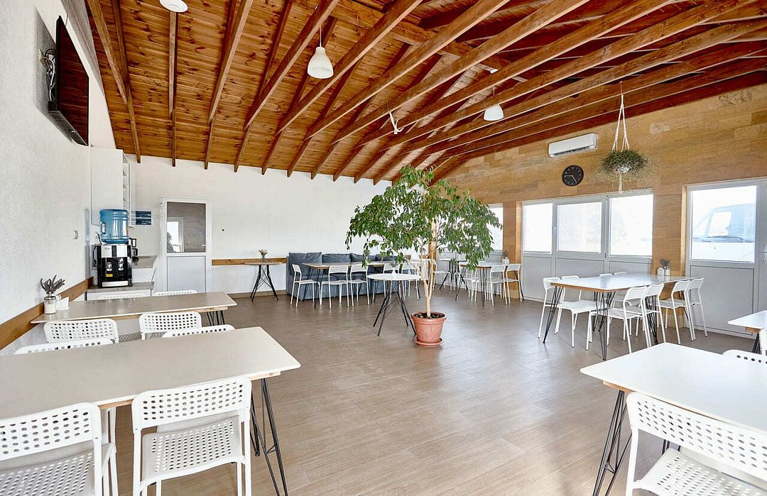 На территории обустроен открытый бассейн с зоной для отдыха, уютная столовая с разнообразным меню и детская площадка. Дополнительно оборудованы парковка, теннисный стол и места для отдыха на свежем воздухе.