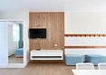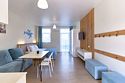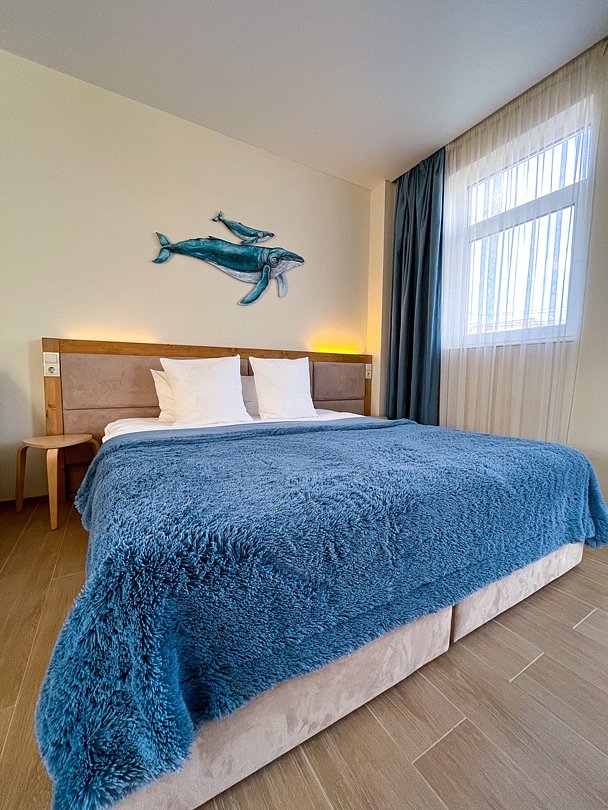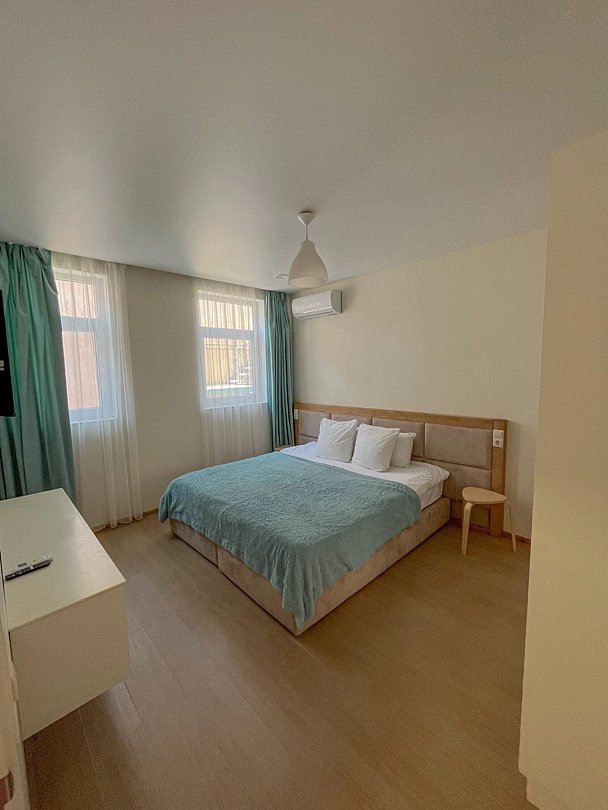 Для проживания предлагаются однокомнатные апартаменты, рассчитанные на 4 гостей, и двухкомнатные апартаменты для компаний и семей до 6 человек. Также доступны студии на 3 человека. Все варианты выполнены в современном стиле, с мебелью и элементами декора, создающими домашний уют. В номерах есть кровати, раскладные диваны, шкафы для хранения, рабочие зоны и обеденные столы. В числе удобств — кондиционер, телевизор, Wi-Fi, электрический чайник и холодильник. Санузлы оснащены душем, феном и туалетно-косметическими принадлежностями. В апартаментах предусмотрены мини-кухни с варочной поверхностью, набором посуды и бытовой техникой.