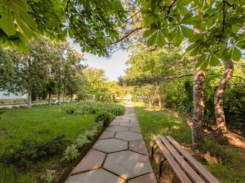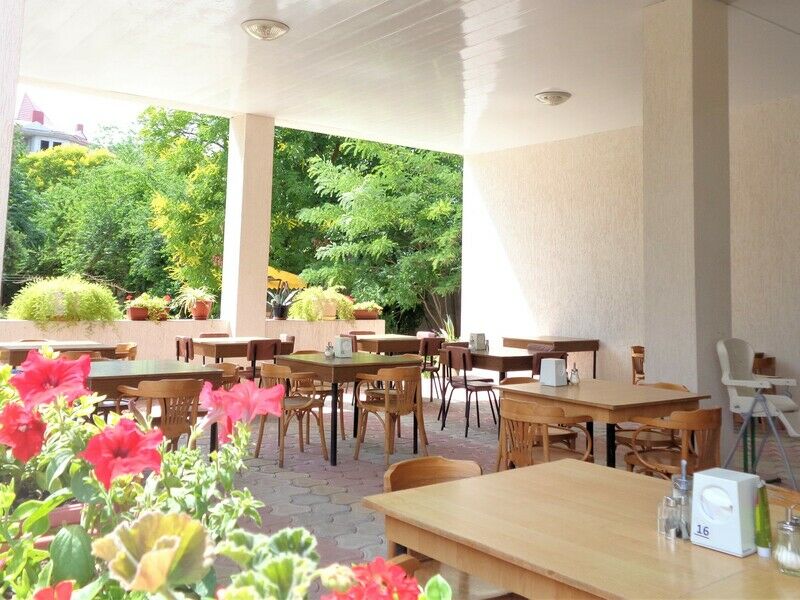 Семейный отдыхДостоинстваУютно, чисто и вкусно. Расположение хорошее: к морю надо добираться, но это хорошая физическая нагрузка, к которой не привыкаешь в хорошем смысле. Чтобы дойти до развлечений, нужно чуть побольше времени. На территории есть скамейки, детская площадка.