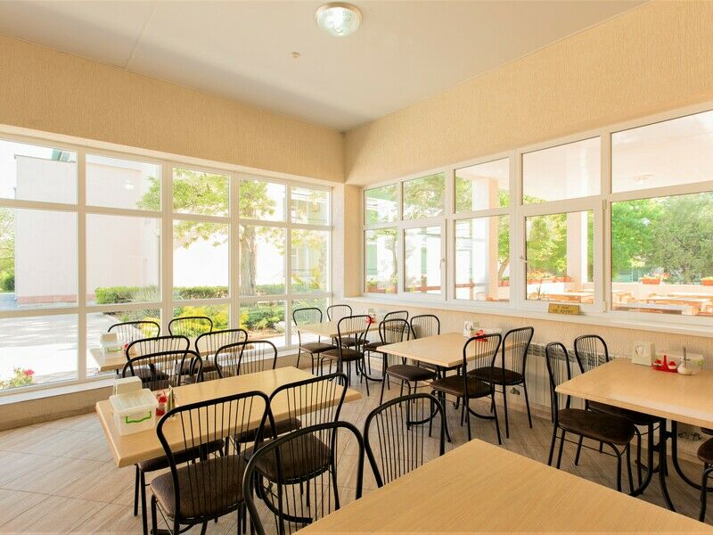 В стоимость оплаченных услуг входит континентальный завтрак, пользование пляжем и детской площадкой, прокат ракеток для настольного тенниса, парковка и Wi-Fi. За дополнительную плату можно заказать обед и ужин. На территории располагается автостоянка, детская площадка, столовая, библиотека.