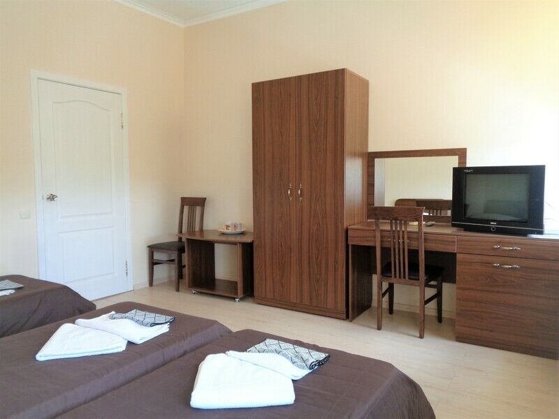 Семейный отдыхДостоинстваВ номерах работает кондиционер, всё в целом уютно и спокойно. Уборку проводили каждый день. С ней нет проблем и на территории пансионата: всё ухожено. Завтрак вполне обычный: каша, кофе/чай, котлета с яичницей, йогурт, хлеб с маслом.