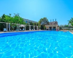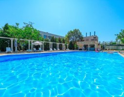 Семейный отдыхДостоинстваРасполагается в самом центре. Совсем рядом море и центральная площадь. Есть бассейны для взрослых, для детей с пресной чистой водой, которую регулярно меняют. Ремонт хороший. В номере всего достаточно. Имеется холодильник, фен, принадлежности для ванны. Бельё гладят. Уборка постоянная и хорошая. В меню большой выбор блюд, детское тоже не исключение. И фрукты, и выпечка, в общем все. Интернет в номере быстрый. Ресепшен работает круглосуточно. Для детей предусмотрены аниматоры и площадки с игровой комнатой.
