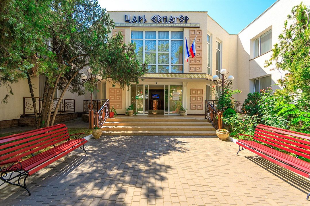 В самом центре Евпатории находится современный отель «Царь Евпатор», который работает по системе «Все включено». Номерной фонд гостиницы представлен пятью категориями, которые имеют все необходимое для комфортного проживания гостей.
