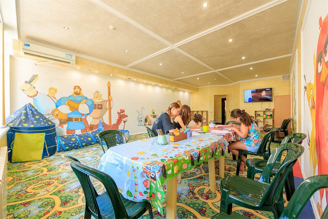 В период с 1 июня по 30 сентября в детской комнате работает аниматор, который увлечёт детей различными играми, творческими занятиями и другими мероприятиями. Услуги детской комнаты с аниматором включены в стоимость отдыха отеле.
