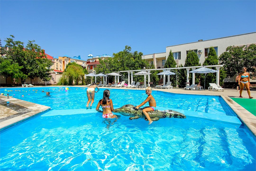 Семейный отдыхДостоинстваПансионат находится в центре. Комфортные условия, большой бассейн, вкусное и разнообразное питание. Рекомендую!