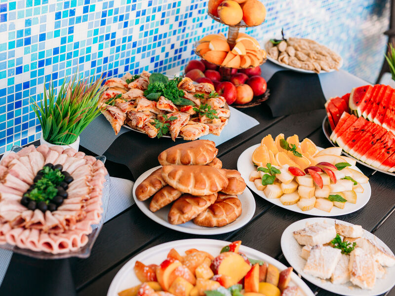 Отель Евпатории с питанием «Царь Евпатор» предлагает гостям широкий выбор блюд на завтрак, обед и ужин в период с 1 июня по 30 сентября.