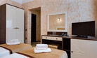 Однокомнатный номер с балконом, общая площадь от 16 до 20 м2. В номере: одёжный шкаф, две односпальные кровати с возможностью объединения, туалетный столик с зеркалом, прикроватные тумбочки, Wi-Fi, кондиционер, холодильник, телевизор, сейф. В качестве дополнительного места предоставляется кресло-кровать или еврораскладушка. При размещении с маленькими детьми, бесплатно устанавливается детская кроватка.Услуги и удобства