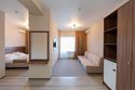 Описание и комплектация номера: Двухкомнатный номер с балконом с современным ремонтом без проходной двери. Общая площадь 24 м2. В номере: две односпальные кровати с возможностью объединения в одну, одёжный шкаф, журнальный стол, прикроватные тумбочки, кондиционер, холодильник, телевизор, фен, сейф, Wi-Fi. Во второй комнате установлен раскладной диван и кресло-кровать, которое используются как дополнительные спальные места. При размещении с маленькими детьми, бесплатно предоставляется детская кроватка. Номера с балконами расположены на 1, 2 и 3 этажах в основном корпусе «Family Resort».Услуги и удобства
