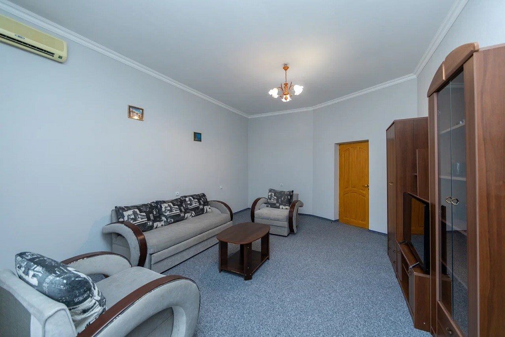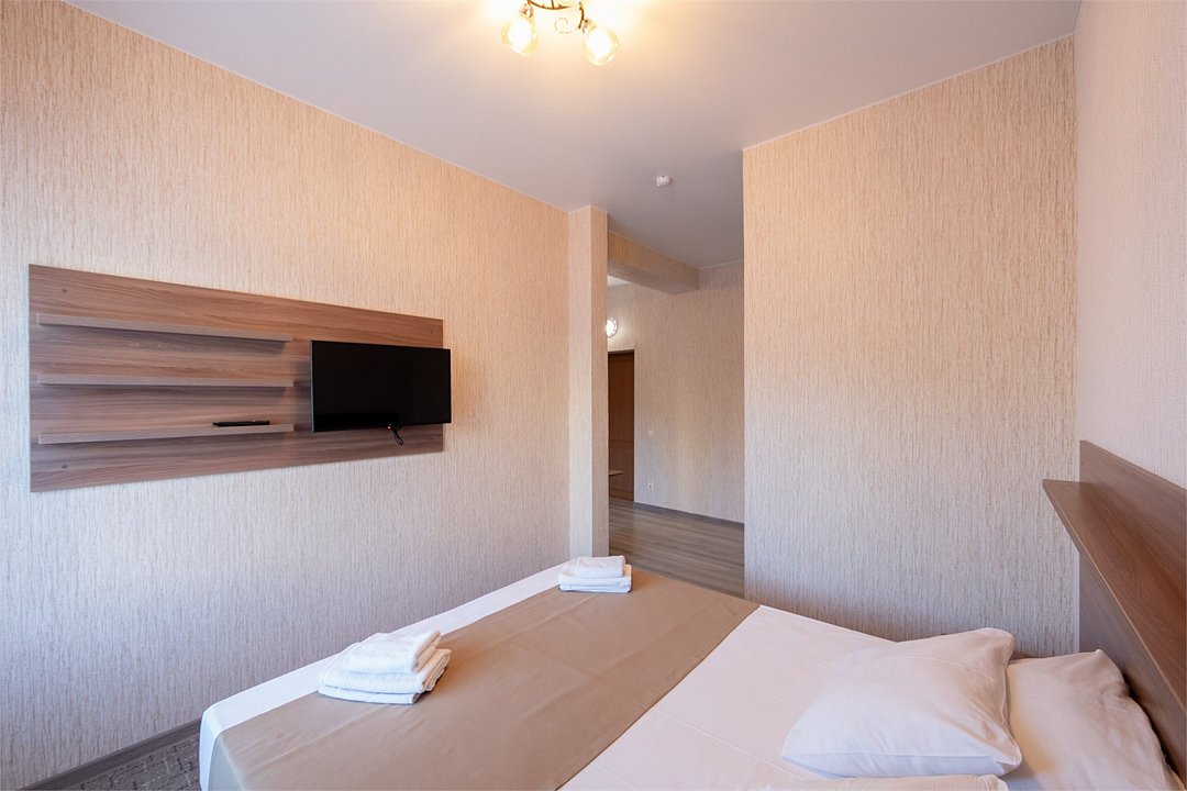 телевизор, Wi-Fi, холодильник, кондиционер, фен, душевая кабина, санузел, банные полотенца, пляжные полотенца, балкон, двуспальная кровать, две односпальные кровати, кресла, тумбы, шкаф для одежды, вешалки, журнальный столик, зеркало, комод, две комнаты, чайный набор, сейф, мягкая мебель, гостиная зона, ковровое покрытие, вид во двор, стаканы, туалетный столик, туалетный столик, туалетные средства, сушилка для белья, диван-кровать, раскладной диван, раскладное креслоВ апартаментах