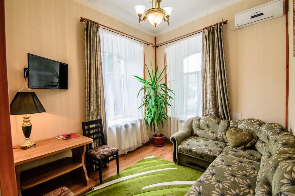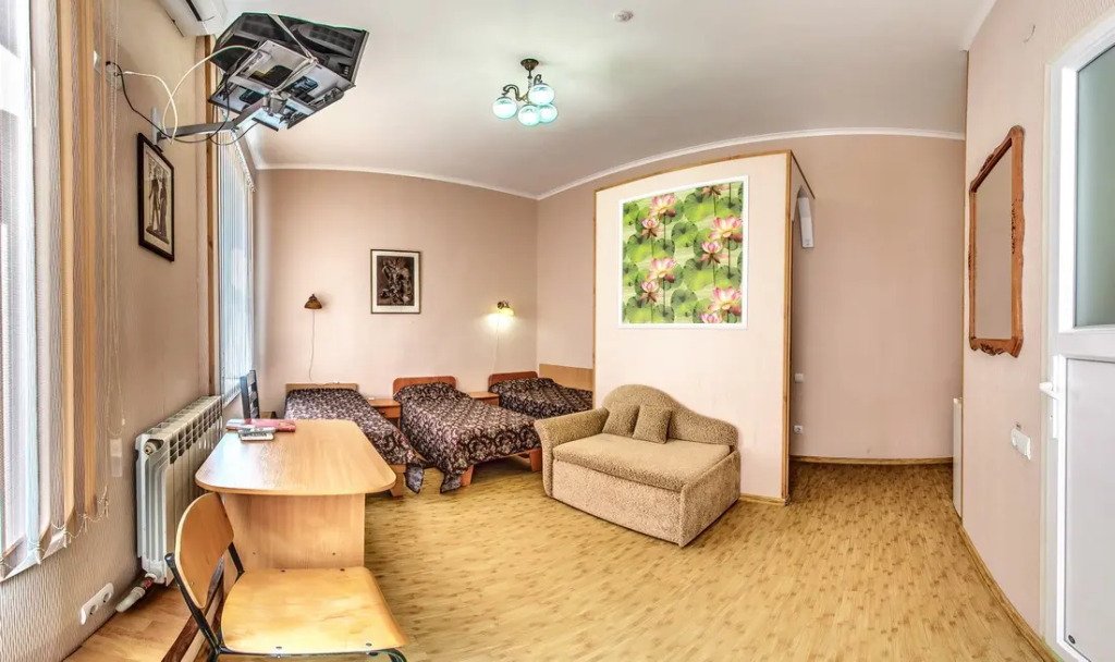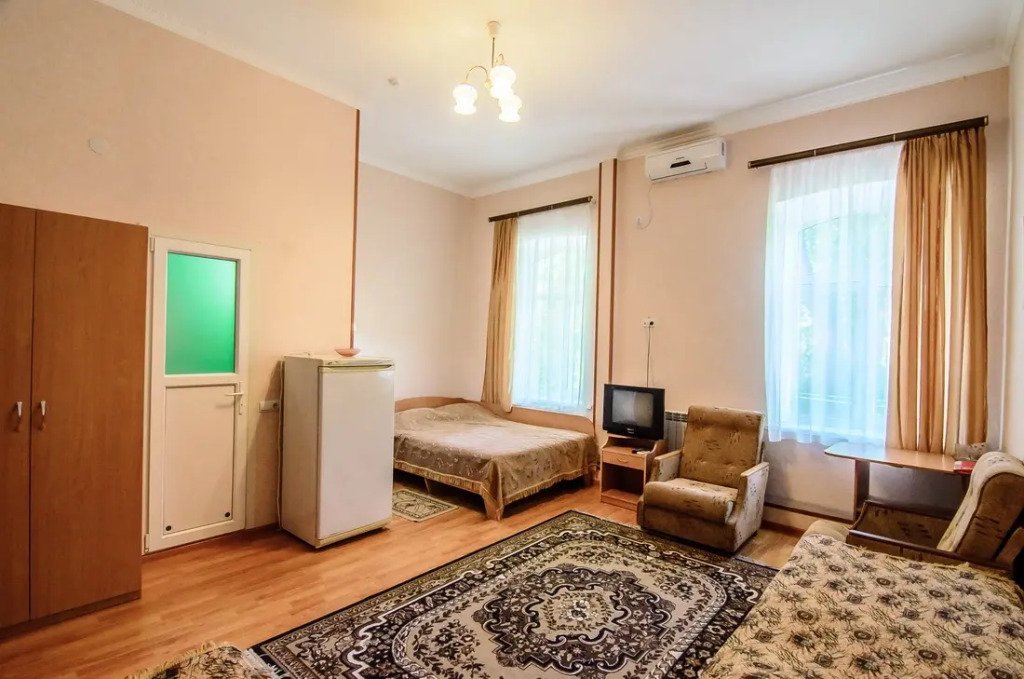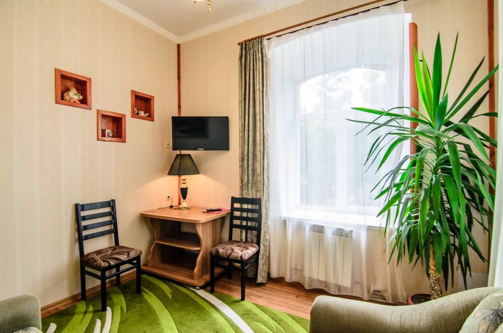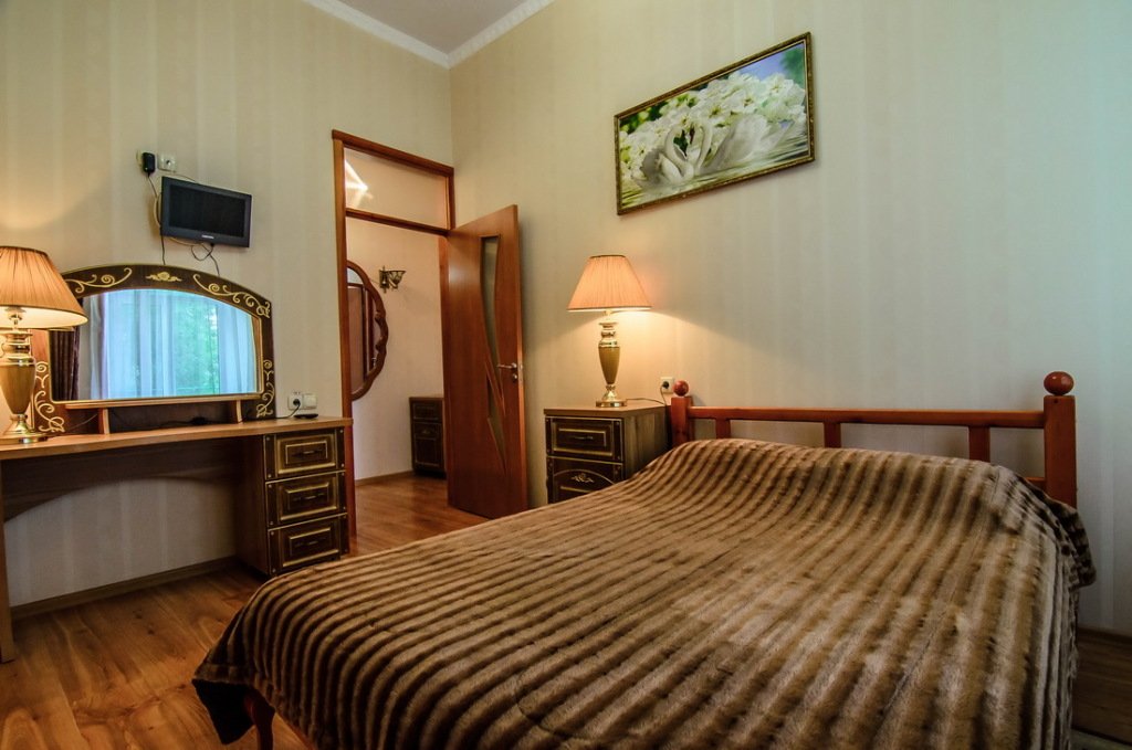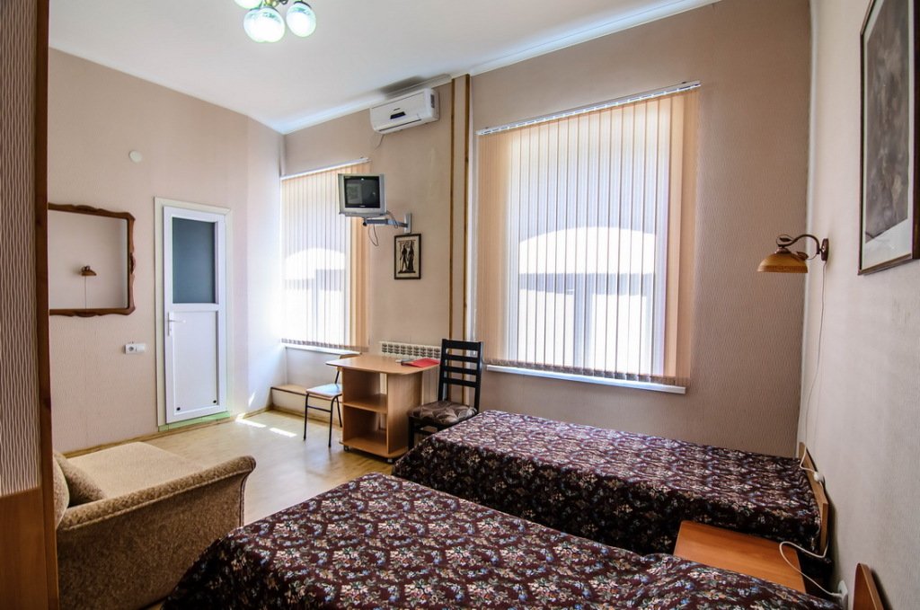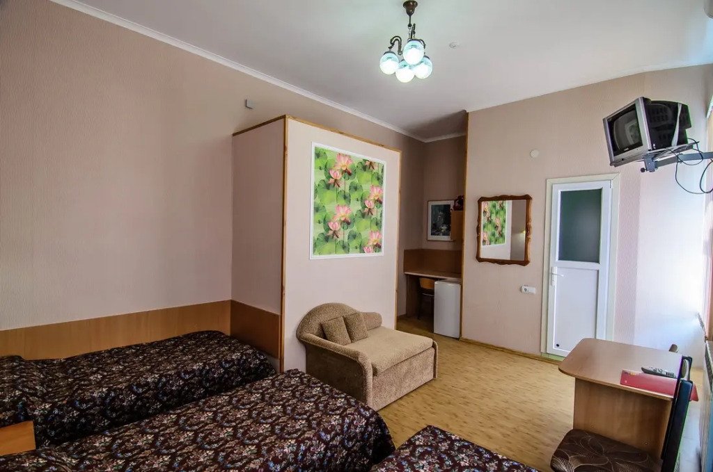 Номер уютно обставлен и оснащён необходимым, чтобы отдохнуть после долгого и насыщенного дня. Имеются телевизор. Оснащение зависит от выбранной категории номера.