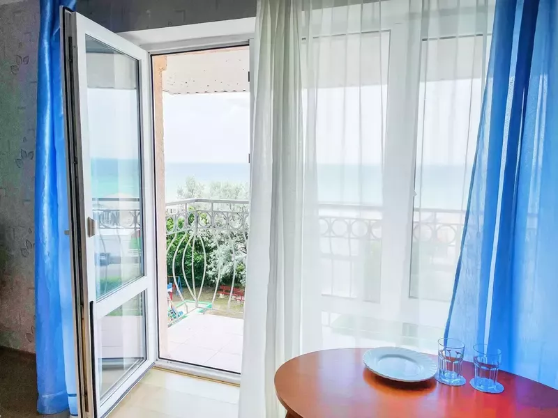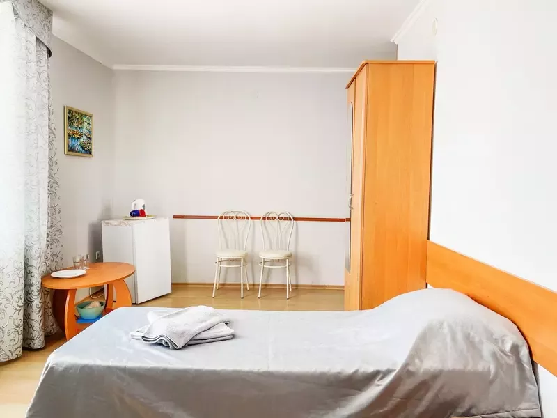 Путешествие с семьейОтдых в Евпатории на вилле "Каламит"Отдыхали на вилле "Каламит" с 20 августа по 6 сентября 2020 года с мамой и сыном (2 года). Проживали в четырехместном номере на 4 этаже с балконом и видом на море. Погода стояла шикарная все дни (за что я и люблю Крым, в отличие от Приморья). До моря идти 1 минуту, стоит только пересечь дорогу и ты на песчаном пляже: песок белый, море тёплое, вода прозрачная. В море пологий спуск, примерно на 10 метров вперед не глубоко, так что купание с маленьким ребенком доставило удовольствие. На пляже есть несколько кафе, пара магазинов, где можно купить всё необходимое для купания. Также в пешей доступности от "Каламита" есть два небольших продуктовых магазина. До города можно добраться на маршрутке, автобусе или такси. Что могу сказать о Вилле: 4-х этажное здание, с ухоженной территорией, много зелени вокруг. Есть детская площадка. Питание одноразовое. Отдельное спасибо поварам. Замечательные девушки и профессионалы своего дела. Добрые, отзывчивые, моему сыну понравились (а он ещё тот привереда), внимательные. Очень вкусно готовят. Порции большие. Вообще, весь персонал Виллы, как на подбор: душевные, готовые дать совет и прийти на помощь. Лично меня очень выручили, за что им огромное спасибо. Единственный неприятный момент - это пауки. Их очень много. И я их боюсь до ужаса. Сказали, что время такое - бабье лето. Заботливый персонал, конечно, каждый день во время уборки избавлял нас от этой напасти. Но на балкон я из-за этого за все 3 недели вышла 2 раза. Сыну, кстати, я вообще запретила выходить на балкон, так как расстояние между прутьями ограждения очень широкое, ребенок может вывалиться. А там 4 этаж. В общем, это все неприятные моменты. В остальном отдых удался. Погода, море, пляж, люди, чистота, еда - всё на высоком уровне. Спасибо, что создаете такие приятные места для отдыха. Если будем еще в Евпатории, обязательно только на вилле "Каламит".