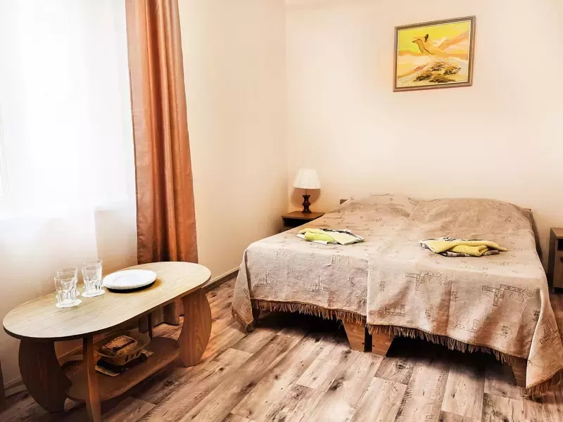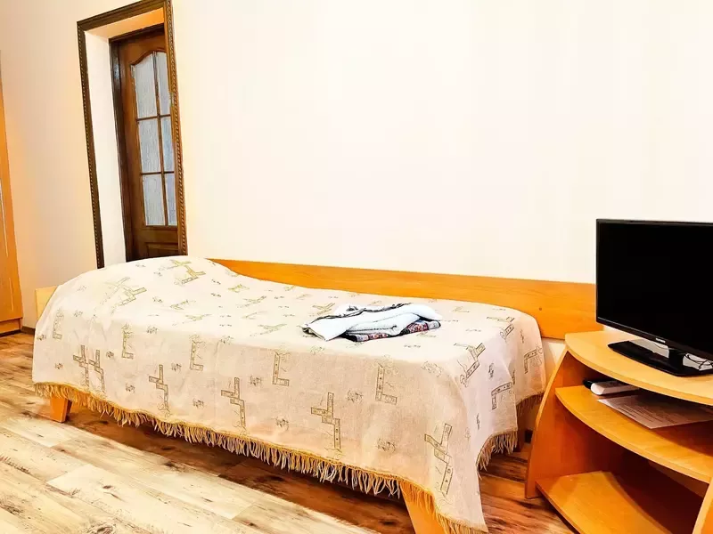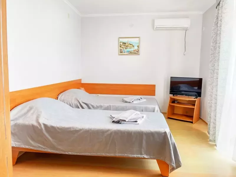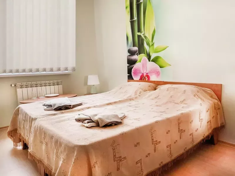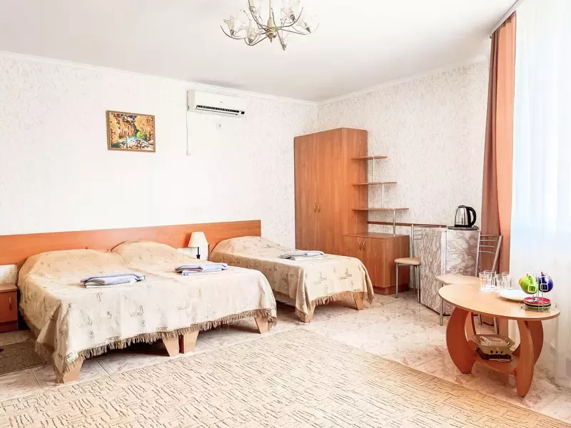 - 2 удобных спальных места, при запросе возможно установить доп.место (подростковую кровать, односпальную кровать, детскую кроватку);