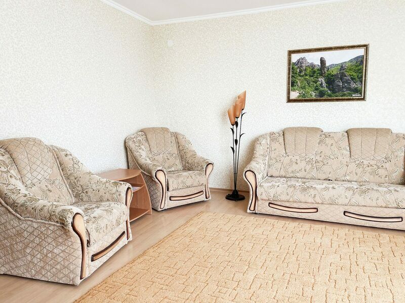 - 2 удобных спальных места (двуспальная кровать в спальне), в гостиной комплект мягкой мебели;