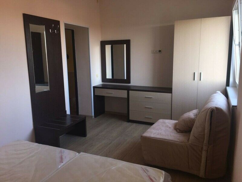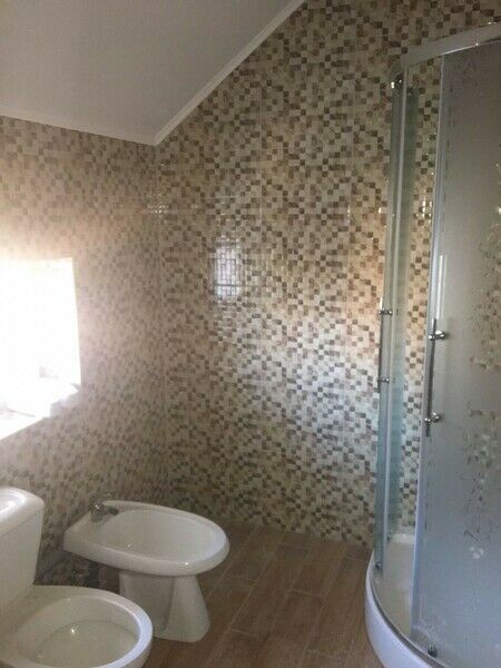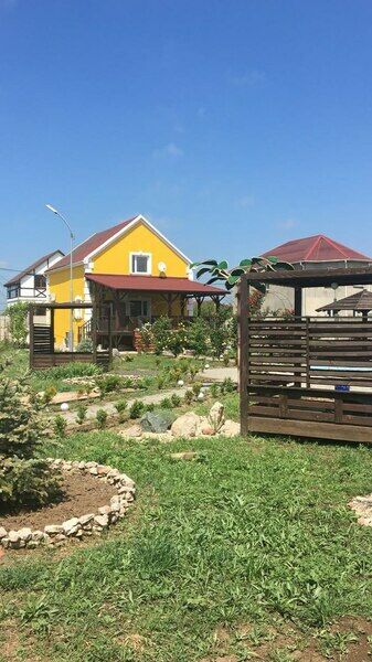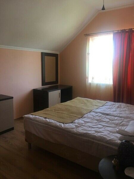 Коттедж с евроремонтом в аренду от собственника.От дома до моря 2, 5 км,на машине 5 минут, пешком 10-15 минут. До Евпатории 6 км, транспорт каждые 10 минут. Бассейн (6 на 9 м установлена дорогая, импортная система очистки воды)+душевые. 2 входа, 2 этажа + жилой цокольный этаж. Итого 5 спален. Дом из камня-ракушка , стеклопакеты, решетки, кондиционеры. В доме 5 комнат и Большая кухня-столовая. 2 санузла, насосная.