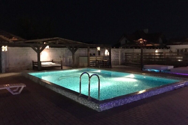 Сауна с двумя душевыми,туалетом и комнатой отдыха (Оплачивается отдельно). Цифровое телевидение, стиральная машина, горячая вода круглосуточно, интернет wi-fi на всем участке, на территории детская площадка, беседка, барбекю,фонтан ,батут, прокат велосипедов, футбол, воллейбол.